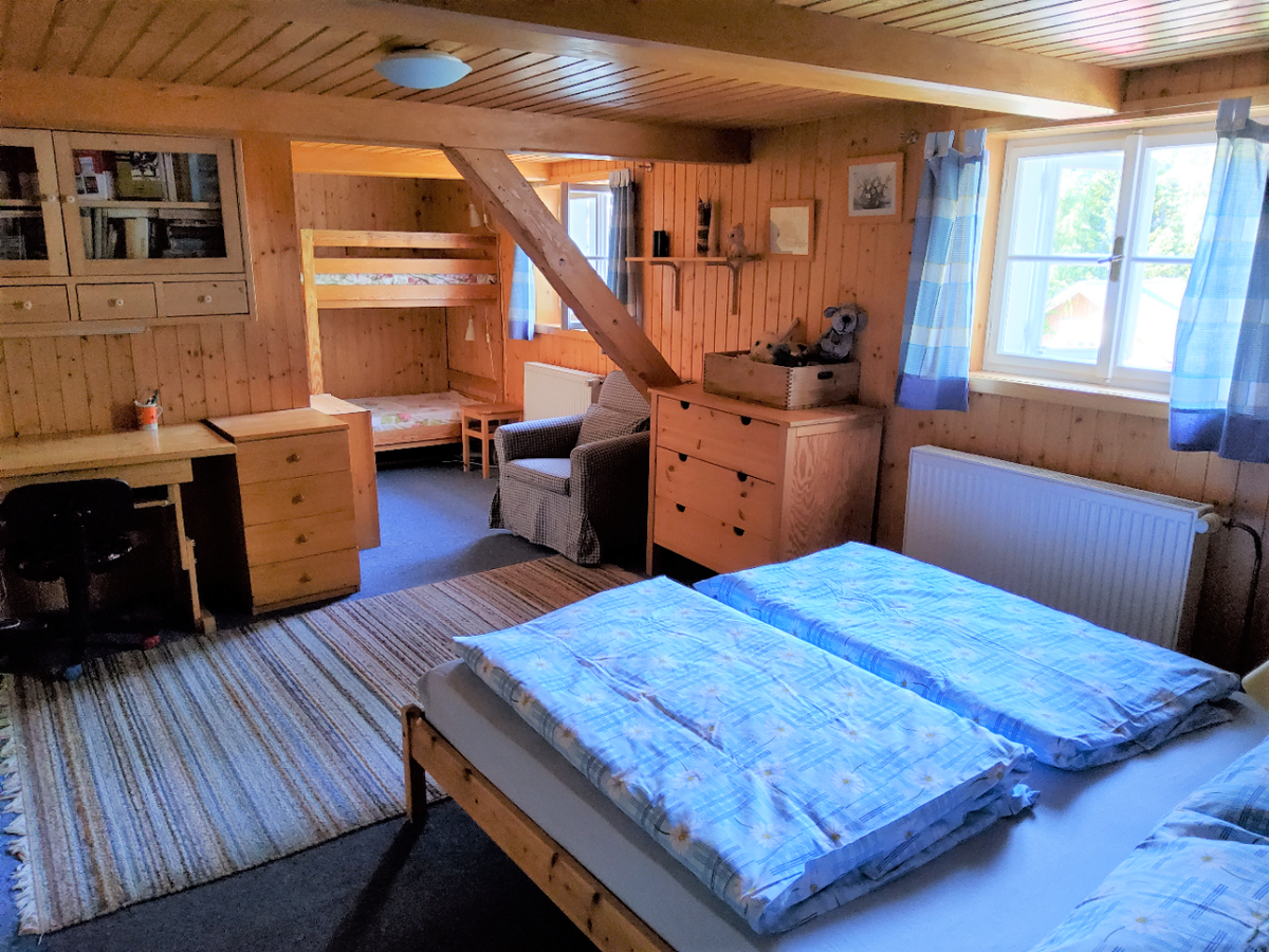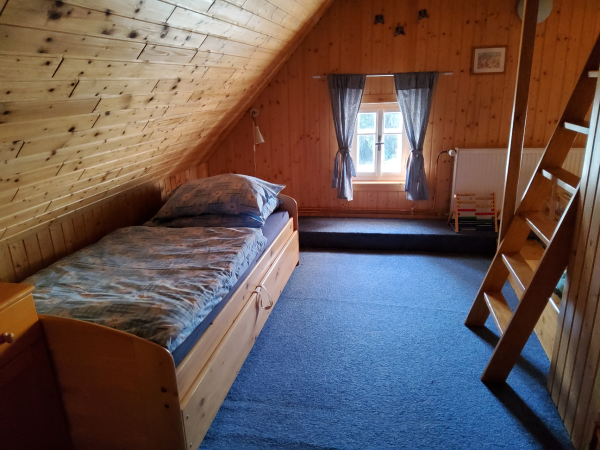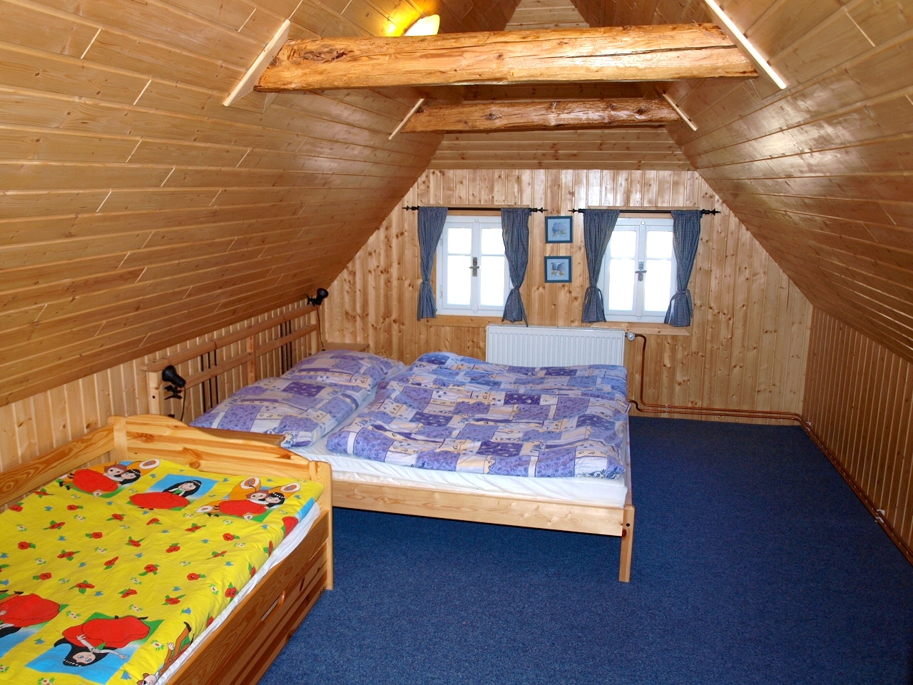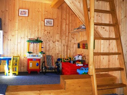 * POKOJ č. 3 je patrový + dětská herna s množstvím hraček, 1x rozkládací dvojlůžko do roviny, 2x matracové lůžko v patře pokoje (velmi oblíbené dětmi), křeslo, prádelník, věšáky a sušák na topení. V případě potřeby lze rozšířit o jednu matraci v patře.