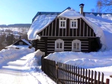 ZIMA - herna pro děti - sáňky - boby - ze sjezdovek až k chalupě na lyžích (za ideálních sněhových podminek) jinak SKIBUSEM, který staví kousek od chalupy.