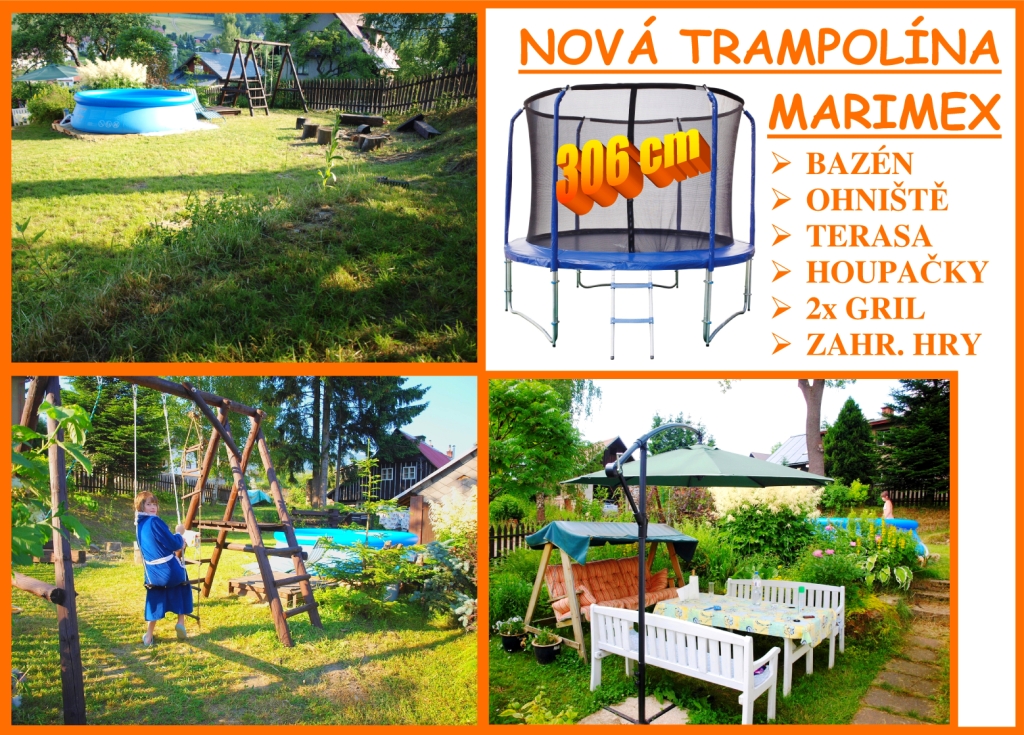 LÉTO - bazén - trampolína - houpačky - pískoviště - gril - ohniště