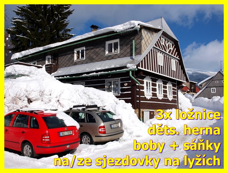 ZIMA - herna pro děti - sáňky - boby - ze sjezdovek až k chalupě na lyžích (za ideálních sněhových podminek) jinak SKIBUSEM, který staví kousek od chalupy.